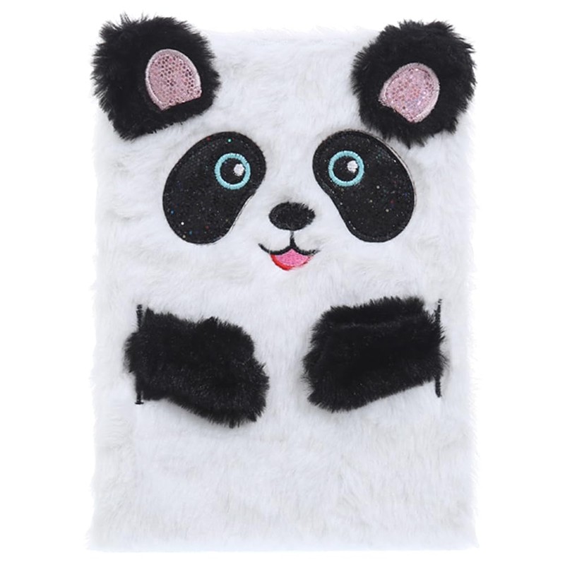 NUOBESTY Plush Notebook, Faux Fur Notebook for Kids, Panda Pattern Diary Journal Hardcover Notebook Writing Pad School Stationery White