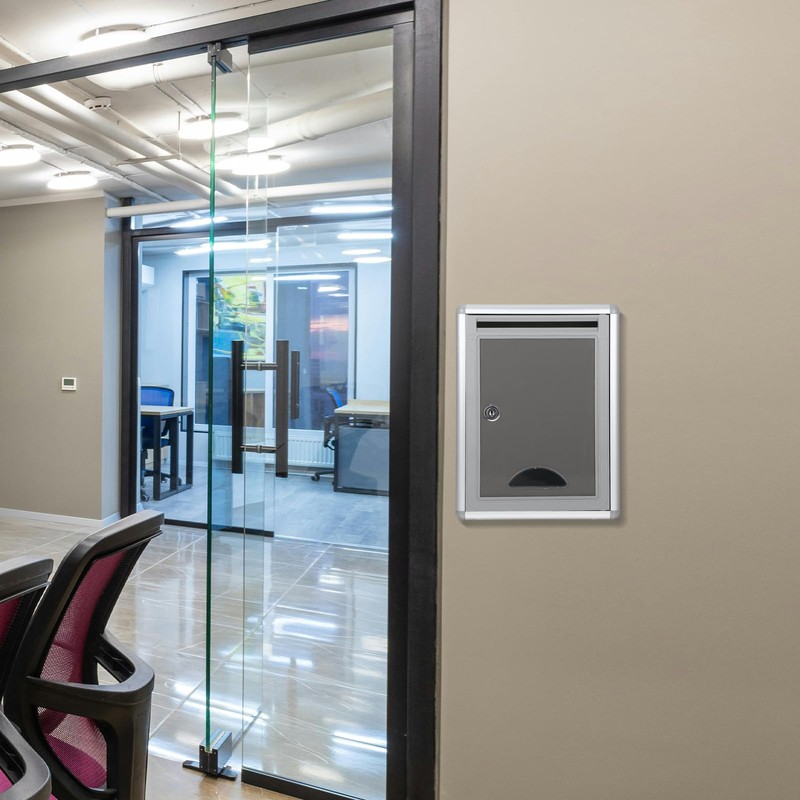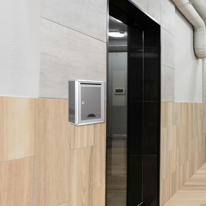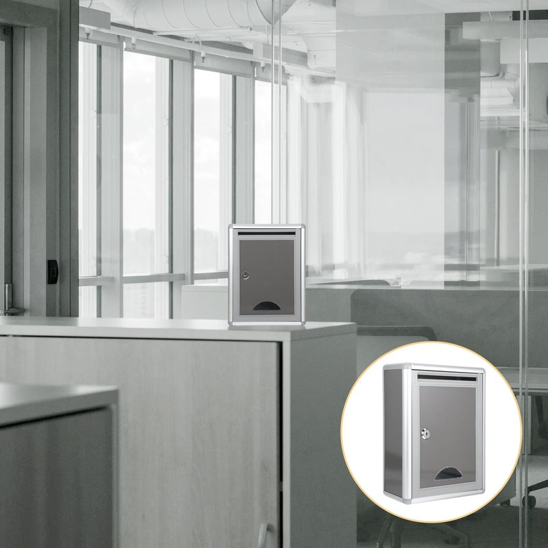 Lockable Mail Box: This wall-mounted suggestion box is wide enough to accommodate bigger items than your average drop box slot. The innovative bin door featured here is designed to accept keys, payments, small parcels, letters and checks