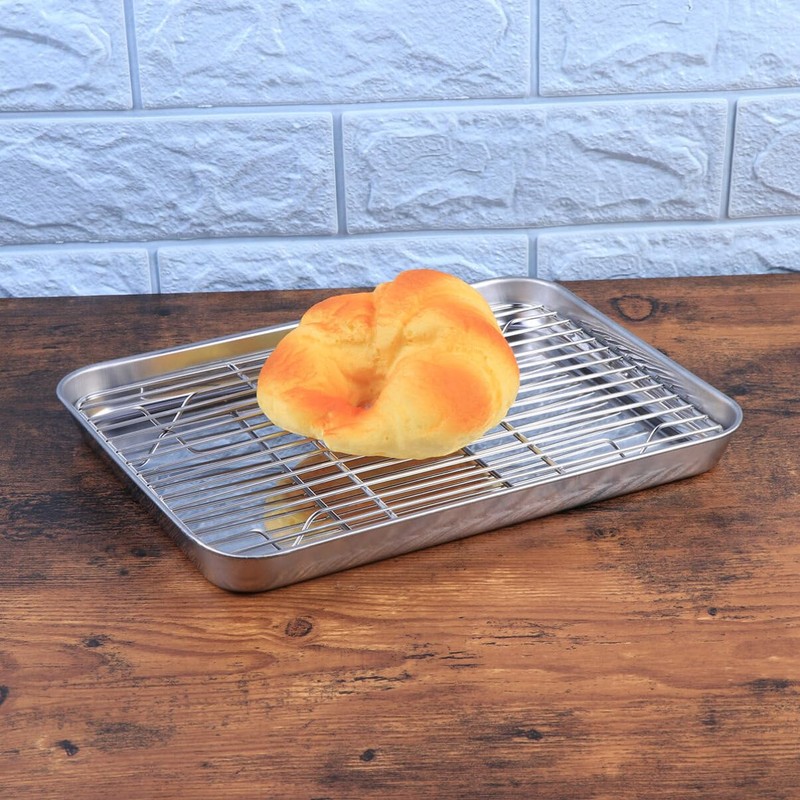 This set of baking and cooling shelves is made of pure stainless steel to bring you a healthier cooking experience. The surface of the baking pan is smooth and easy to store food and clean. The tray and stand are dishwasher safe to save you energy after use. Not only for baking and baking, it can also be used for cooking dishes, cookie trays and cookie cooling shelves.