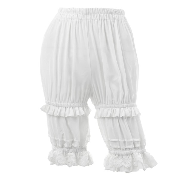 Nuoqi Pantaloons Women Lolita Bloomer Victorian Steampunk Bloomers Lace Ruffles Pumpkin Shorts Puffy Clown Pants White L