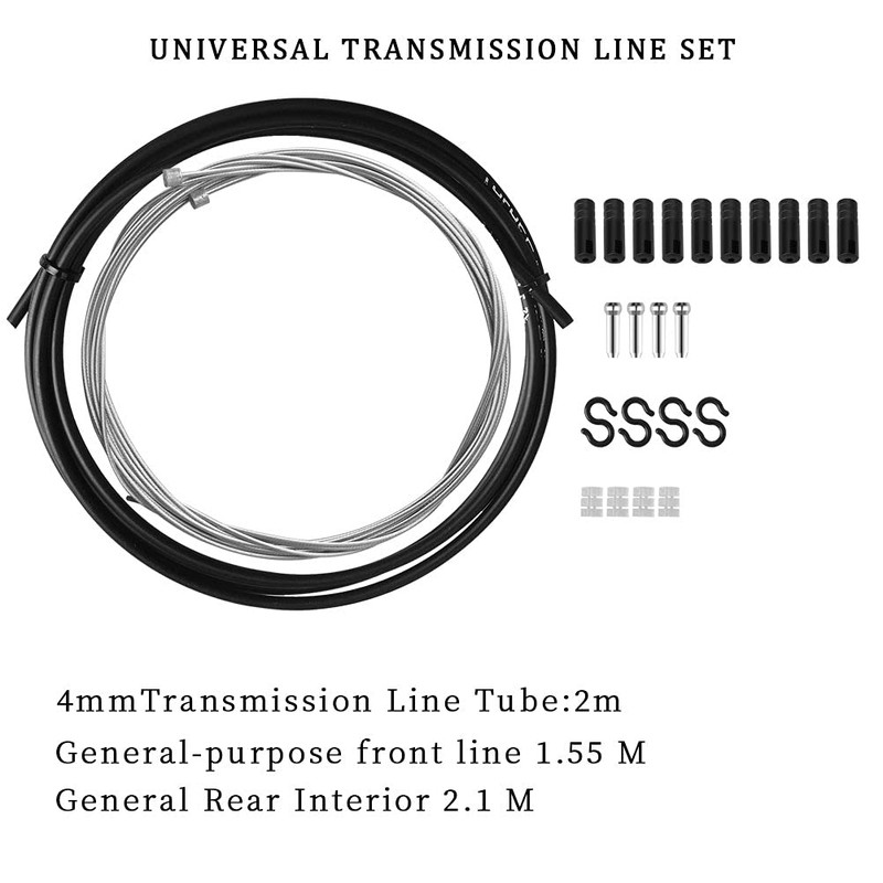 - Package contents: transmission line tube x 1 (length 2 m), front gear cable x 1 (length 1.55 m), rear gear cable x 1 (length 2.1 m), brake cable cap x 10, S buckle x 4, inner cable 0 ring x 4, wire end cap x 4.