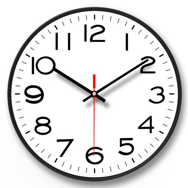 - Simple round wall clock in black with quiet ticking movement. Precise quartz movements guarantee accurate time keeping.
