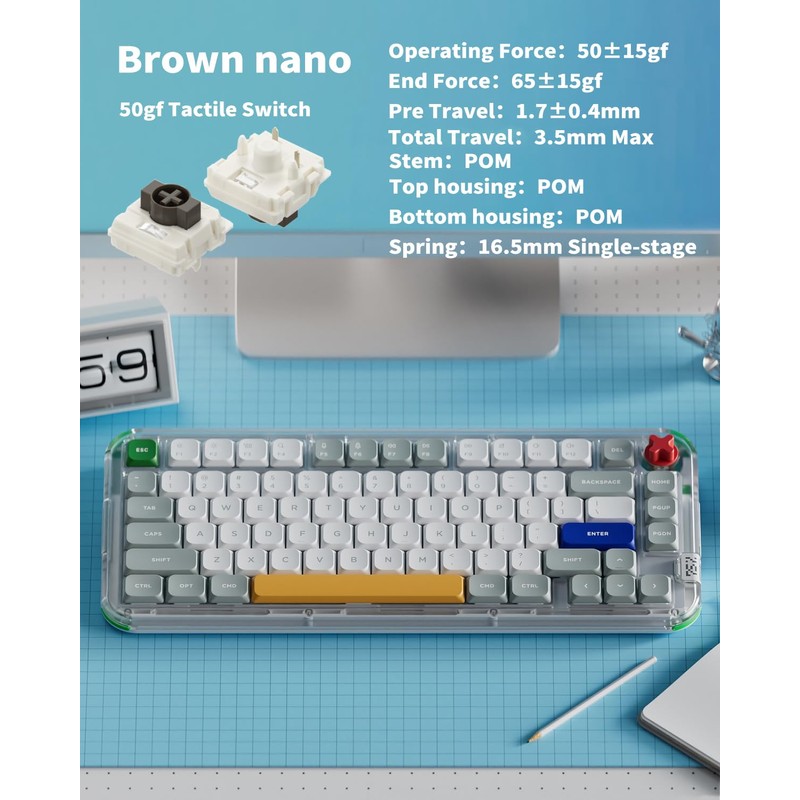 - Cross-Platform Compatibility: The Kick75 is designed to work seamlessly across multiple operating systems, including Windows, macOS, and Linux. With its dedicated system toggle and additional keycaps for both Windows and macOS, you can effortlessly switch between platforms without compromising functionality or comfort.