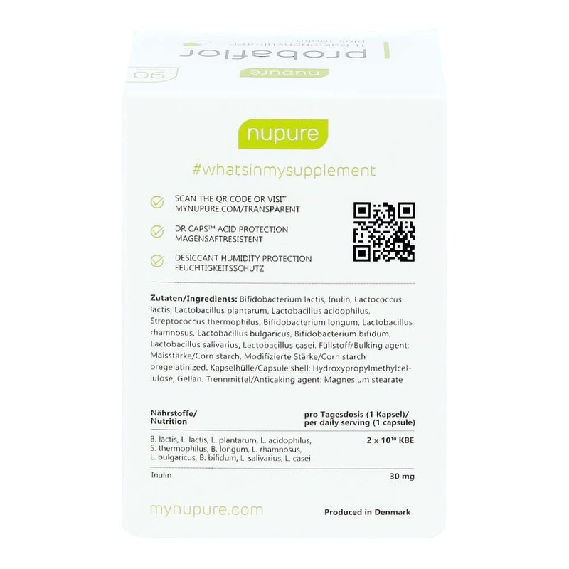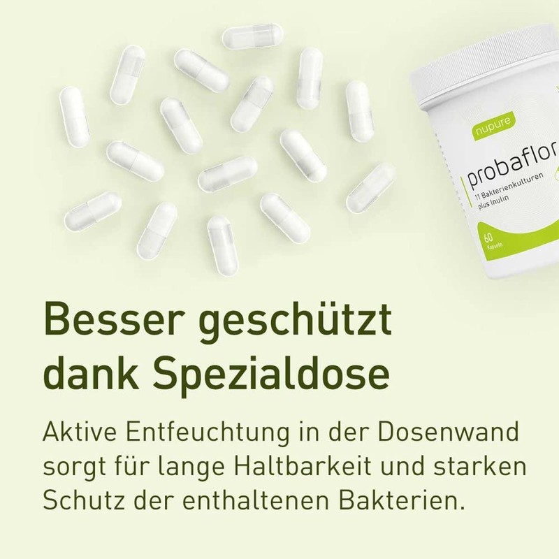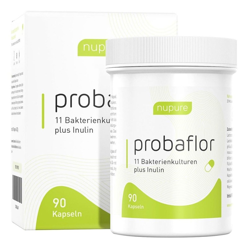 Nupure probaflor Probiotikum - 11 Bakterienkulturen plus Inulin - Nur 1 Kapsel täglich vor dem Frühstück.
