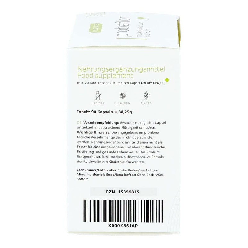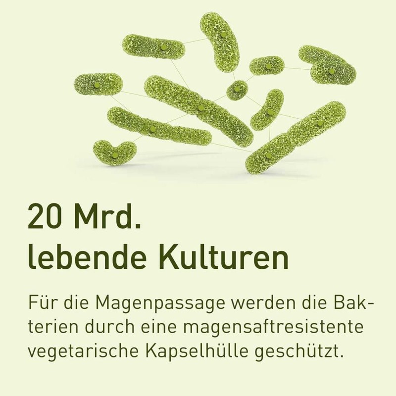 Nupure probaflor Probiotikum magensaftresistent Kapseln (Packungsgröße: 90 stk) enthält pro Kapsel mindestens 20 Mrd. KBE Darmbakterien zum Ende der Haltbarkeit.