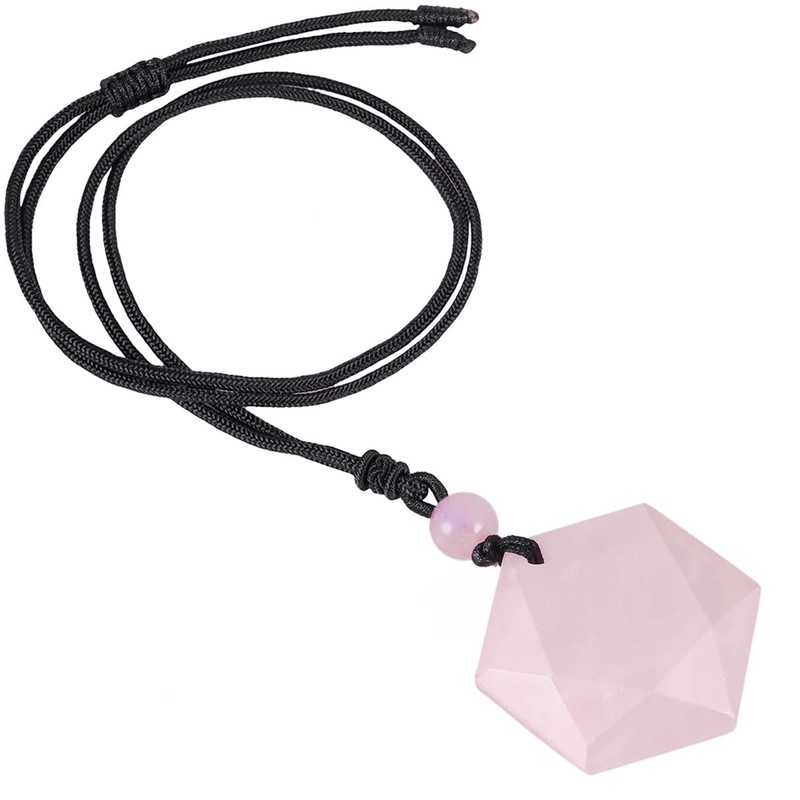 Nupuyai Crystal Star of David Hexagram Pendant Necklace for Men Women Healing Stone Amulet Chain with Adjustable Cord, Stone Nylon, Rose quartz stone.