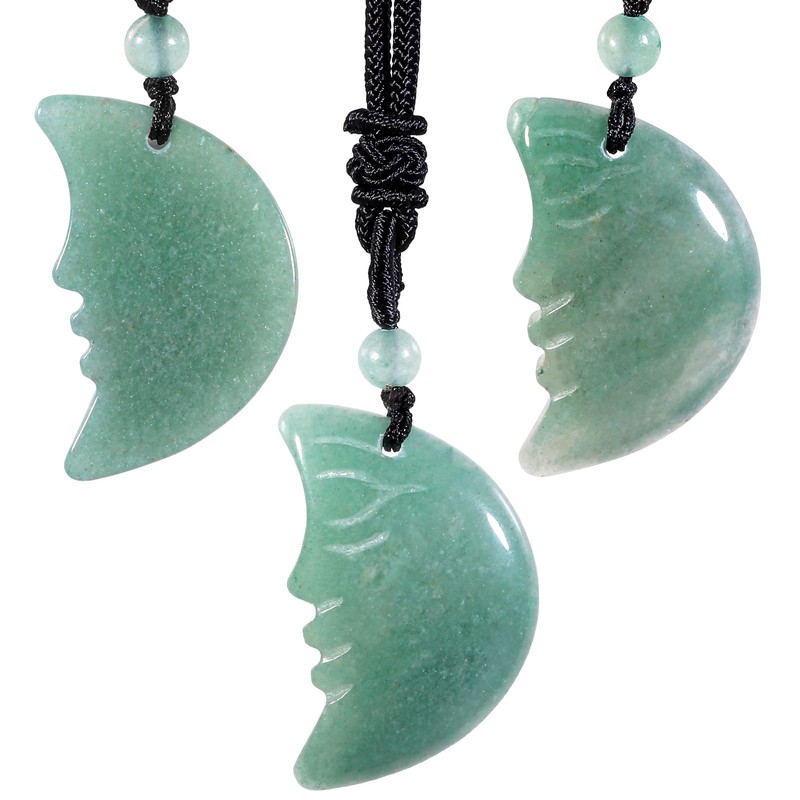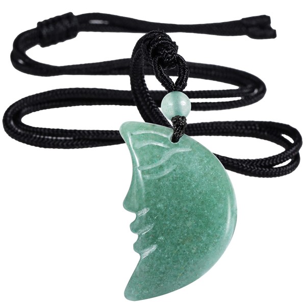 Nupuyai Green Aventurine Carved Crystal Stone Moon Face Necklace for Women, Energy Reiki Healing Stone Pendant with Adjustable Cord 68cm