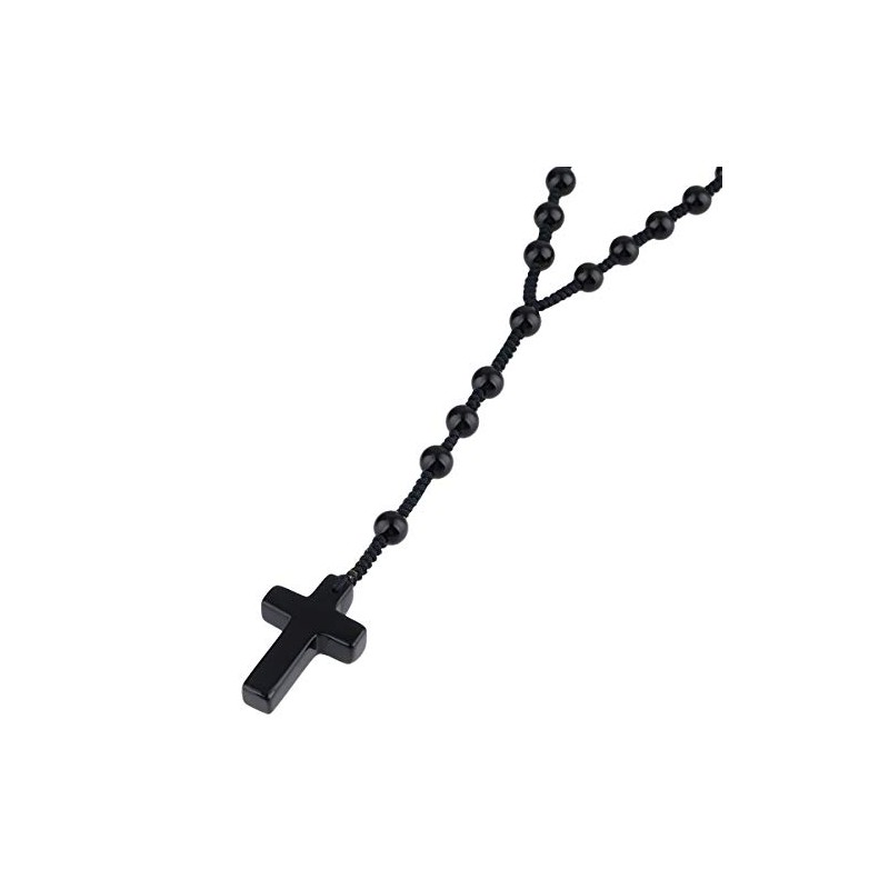 Nupuyai Natural Black Agate Cross Stone Pendant Necklace Amulet Healing Crystal Beads Long Braided Necklace for Women Men