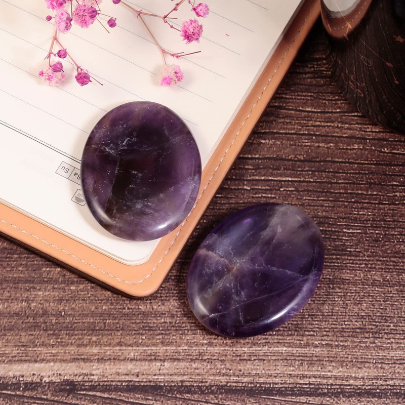Nupuyai Nupuyai 2pcs Amethyst Oval Thumb Worry Stone Set, Energy Crystal Pocket Palm Stone for Healing Anxiety Stress Relief Reiki Therapy, 45x35mm