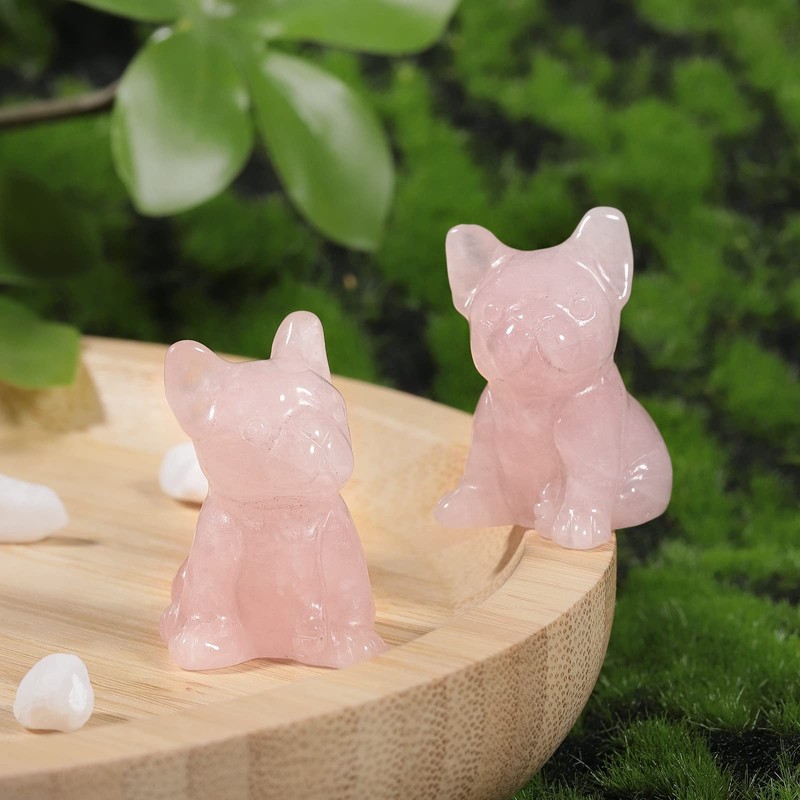 Nupuyai Set of 2 Dog Figures Crystal Decorative Gemstone French Bulldog Figure Small Healing Stone Puppy Animal Figures Set for Lucky Charm Pocket Stones Feng Shui Decoration, Rose Quartz Stone