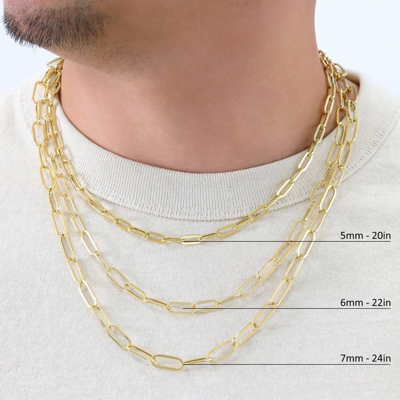 The paperclip chain consists of elongated rectangular links that are connected perpendicularly. Each link is finely polished to exude a smooth appearance and incredible shine. The paperclip chain is one of the most trendy and modern chain styles for women, driving the perfect combination of luxury and brilliance.