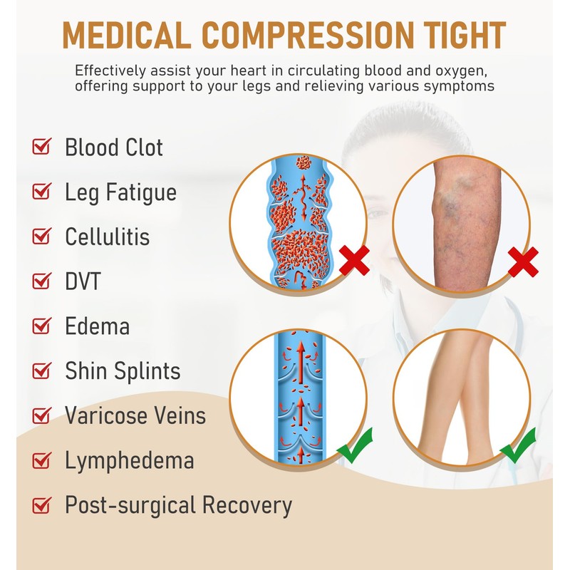 - EFFECTIVE THERAPY: NURCOM support hose for women & men are designed with gradient compression technology to effectively reduce leg swelling, spider and varicose veins, cellulitis, and improve blood circulation. Help relieve post-phlebectomy discomfort, leg pain, venous insufficiency, blood clots, DVT, and support post-sclerotherapy care. These opaque closed toe medical compression tights also offer warmth and cold protection. Ensuring an unparalleled level of comfort and health for the wearer.