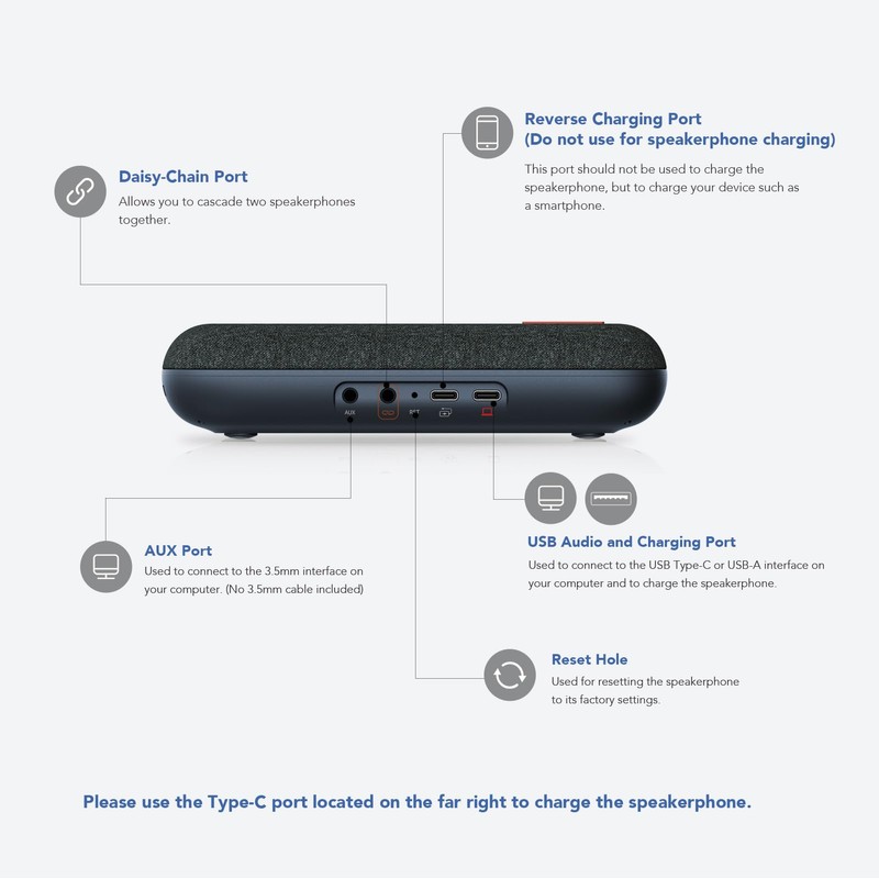 The Nuroum A15 conference speaker and microphone features 4 professional microphones capturing voices clearly from all directions with natural bass, ideal for both individual home offices and corporate meeting rooms of up to 10 people. Two units can be cascaded to support conferences of up to 20 participants.