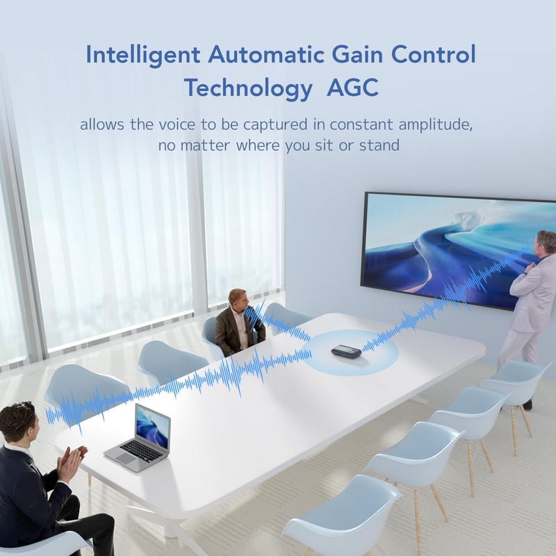 - Full Duplex & Automatic Gain Control: Full duplex audio processing technology allows multiple people to talk at the same time without missing a word. With the help of AGC technology, the volume of the voices within 3m/10ft can be adjusted automatically so the voices of all conference participants can even be understood equally well, even if they sit at different distances and speak at different volumes.