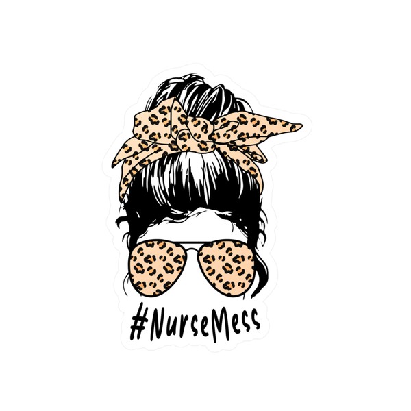Nurse Mess Sticker Messy Bun Leopard Gift Idea for her Large Car Laptop Waterproof Decal Vinyl