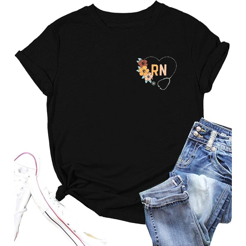 Nurse Shirt Women RN Tshirt: Registered Nurse Shirt Nurse Life T-Shirt Nurse Week Blouse Nursing School Gift Tee Tops Black