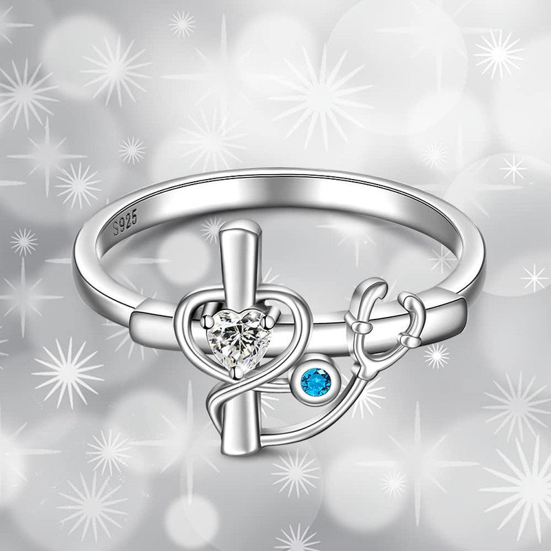 • [CROSS AND HEART RING]This cute little stethoscope is a with a cross and a heart design with a heart-shaped gem in the middle and sparkling blue gems. The cross symbolizes the doctors, nurses and medical professionals who have the act of giving anyone faith, prayer, dedication or blessing.
