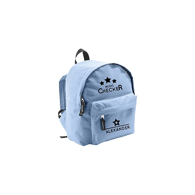 Nursery Backpack with Name | Includes Name Print | Mini Checker Motif | Backpack for Children Boys Girls Light Blue & Cool Saying, lightblue