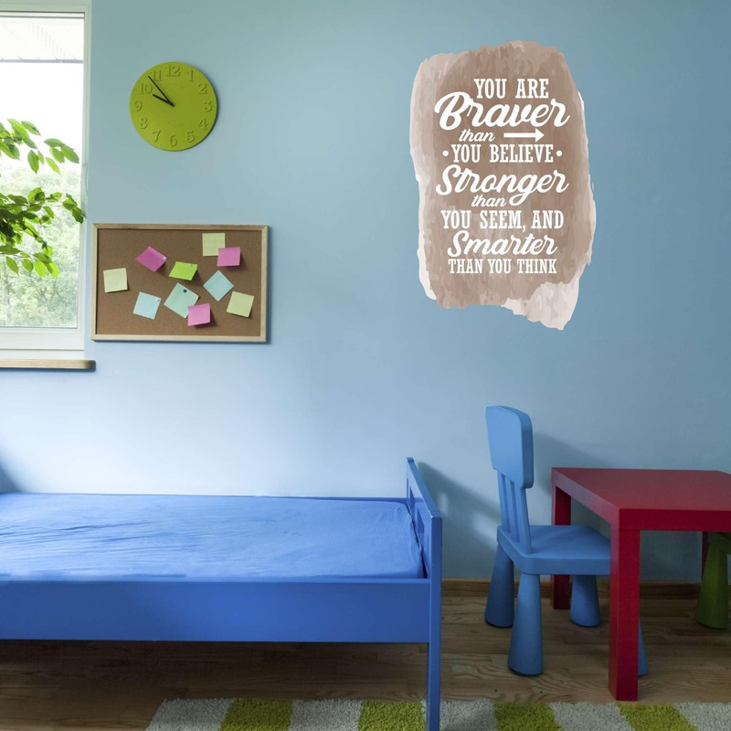 Nursery You are Braver Than You Believe Valiant Heroic Resolute Determined Gutsy Wall Art Sticker Designs Vinyl Stickers for Home House Walls Rooms Windows Bedroom Decoration Size (14x14 inch)