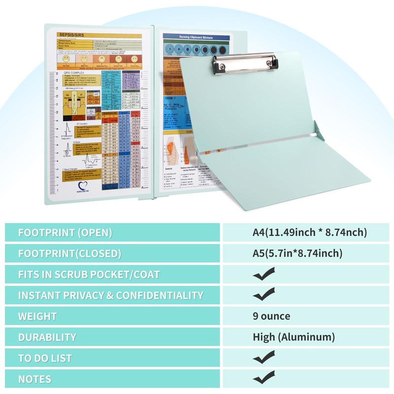 Nursing Clipboard with Nursing and Medical Edition Cheat Sheets - Nursing School Essentials - Aluminum Foldable Nurse Clip Boards Essential Accessory for Efficient Patient Care