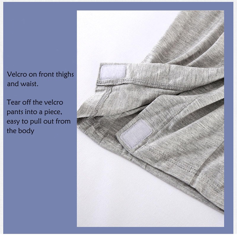 - Easy to Put on and Take Off: One-piece design,pants waist with Velcro,a tear to open,easy to put on and take off,thigh front and waist Velcro,tear the Velcro pants into a piece,easy to pull out from the body.