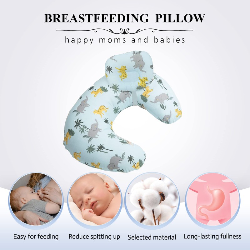Nursing Pillow with Baby Cushion, Multifunctional Breastfeeding Baby Breast Feeding Pillow with Detachable Little Pillow Maternity Pregnancy + 100% Cotton Removable Cover (Green Elephant)