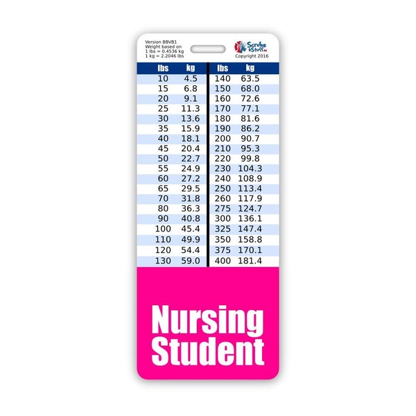 Nursing Student Badge Buddy Vertical w/Height & Weight Conversion Charts (Oversized, Pink)