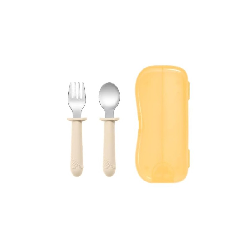 NURTUREBLOOM, Stainless Steel and BPA Free Silicone Fork and Spoon Set with Travel Case for Baby/Toddler (Cream)