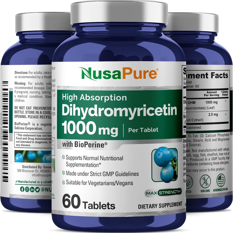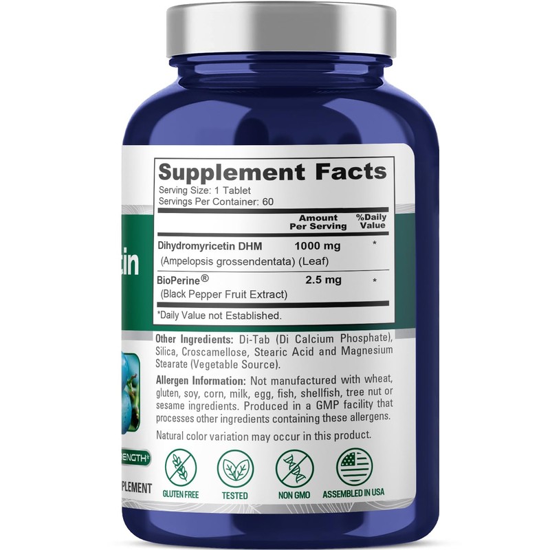 - Dihydromyricetin DHM 1,000mg per tablet, 60 tablets for a 60-Day supply.