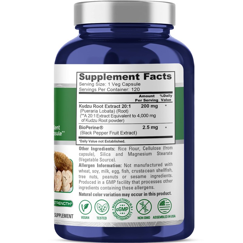 - High Absorption Kudzu 4,000mg equivalent per veggie capsule. Bioperine