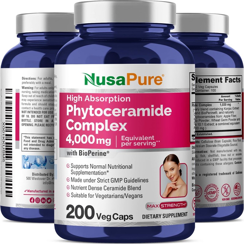 NusaPure Phytoceramide Complex 10:1 Extract, 1030 mg Equivalent to 4000 mg 200 Veggie Capsules (Non-GMO) Bioperine