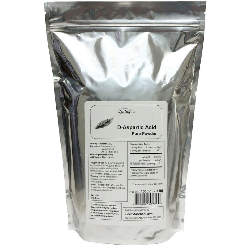 NuSci Pure D-Aspartic Acid (DAA) Powder AJI Quality Standard (1000 Grams (2.2 lb))