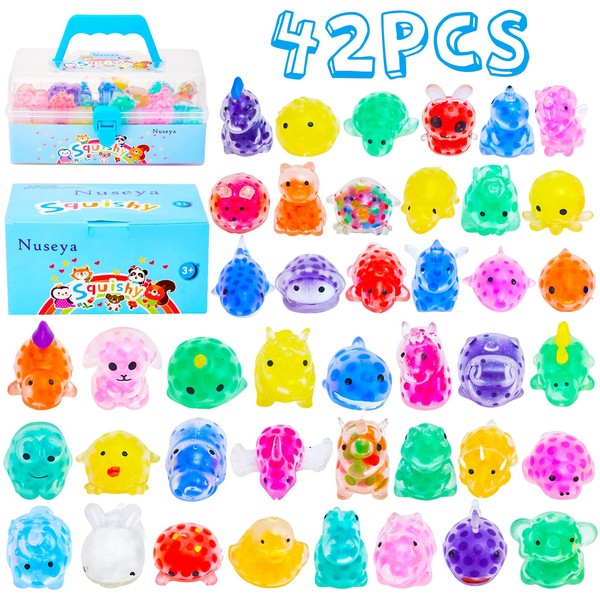 Nuseya Squishy Toys 42 Mochi Squishy Toys for Kids Soft Mini Squishies Animals with Orbeez Inside Small Rewards for kids Party Favor Idea Party Bag Fillers with Box (No duplication)