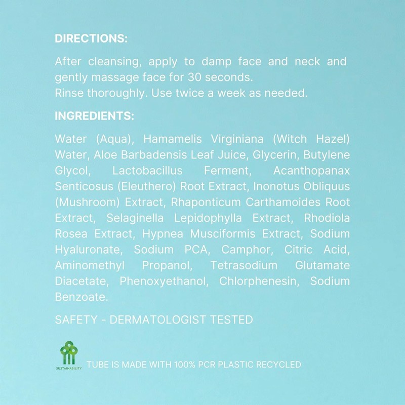 - This toner includes our Bioadaptive Botanical Complex, featuring adaptogens like Rhodiola, Maral Root, and Chaga Mushroom to help your skin adapt to daily issues and maintain balance.