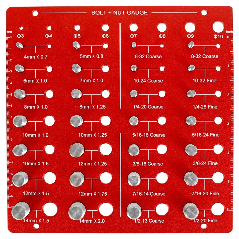 Nut and Bolt Thread Checker, Aluminum Alloy 44 Thread Sizes Checker Thread Identifier Gauge Imperial and Metric Size Precise Nut and Bolt Thread Identifier Measuring Tool for Nut Bolt (Red B)
