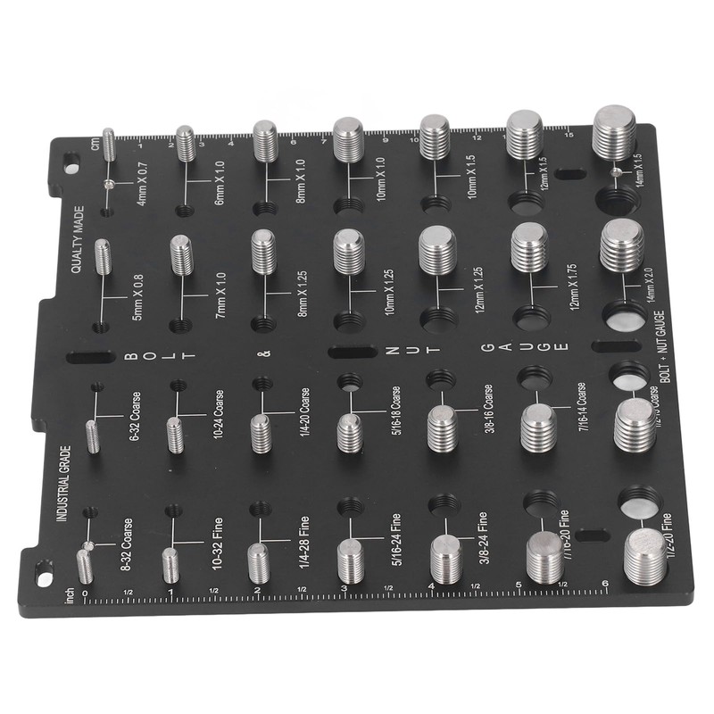 - [Easy Identification] This thread checker effortlessly identifies 28 different sizes of bolts and nuts, from m4x0.7 to m14x2.0 metric thread, and from 6‑32 coarse to 1/2‑20 fine thread.