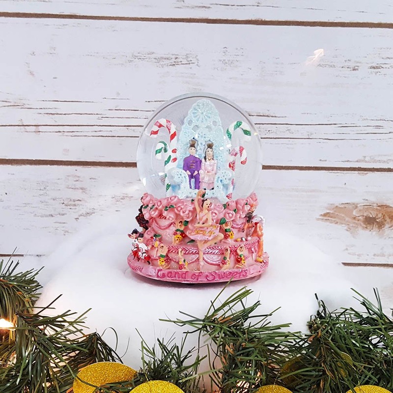 - FUN MUSICAL SNOW GLOBE FOR NUTCRACKER FANS: This festive Land of Sweets Musical snow globe features Clara and the Nutcracker Prince surrounded by a sugary wonderland. The Sugar Plum Fairy pirouettes pristinely on the base of the snow globe surrounded by other charming embellishments. Wind up this gorgeous snow globe to hear the “Dance of the Sugar Plum Fairy” by Tchaikovsky. The Land of Sweets Musical Snow Globe is part of our musical snow globes collection and stands 5.75” tall and 4.5” wide.
