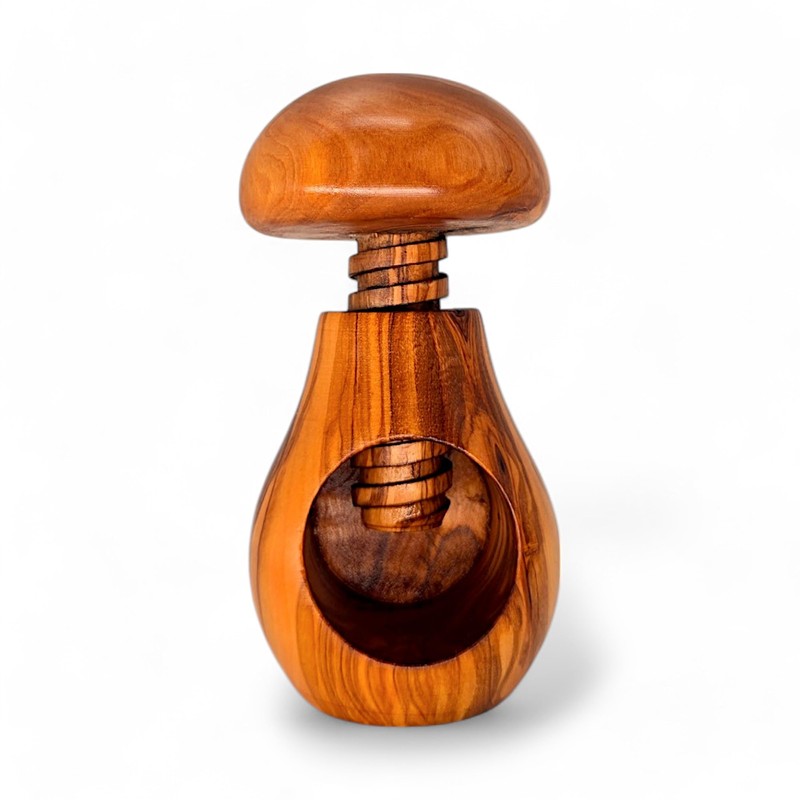 Nutcracker (Mushroom) - Handcrafted Olive Wood Nutcracker Set | Unique Traditional Lever and Modern Design | Nut Cracking Tools for Walnuts, Pecans, Hazelnuts