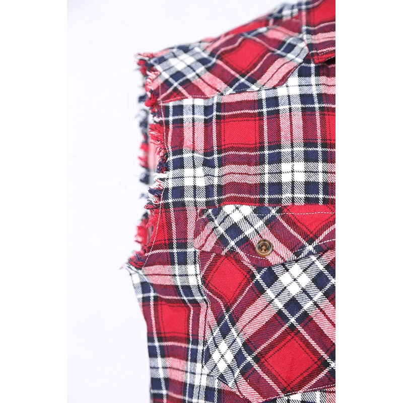 NUTEXROL Men's Casual Flannel Plaid Shirt Sleeveless Cotton Plus Size Vest Small Red and Black