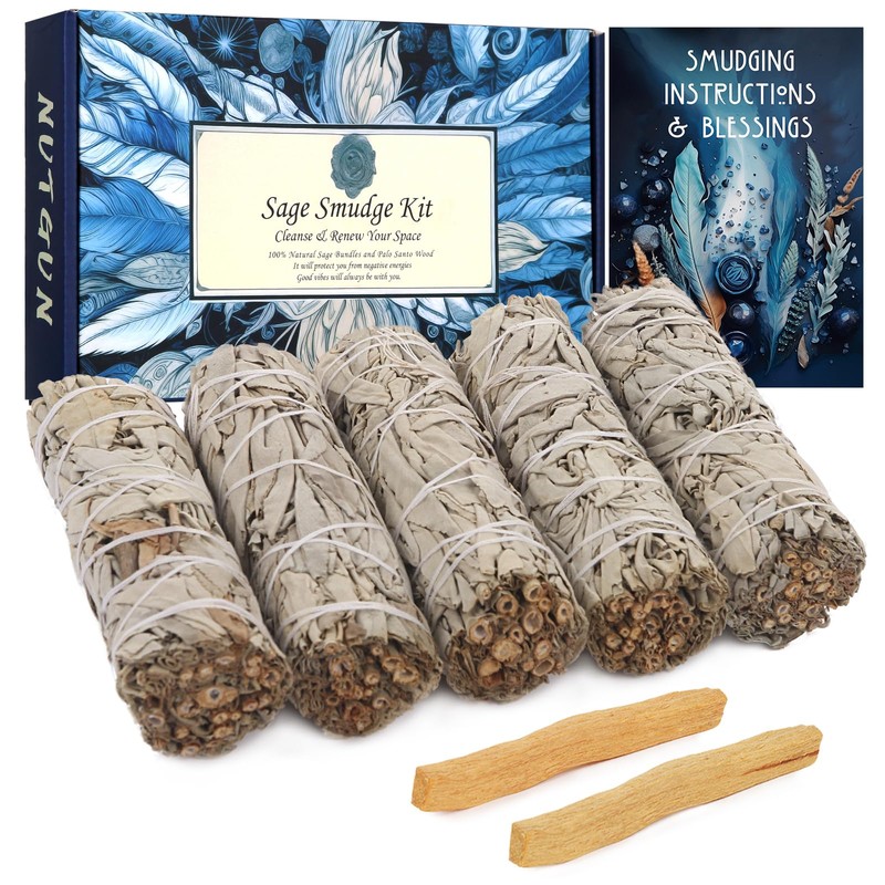 - Drive Away Negative Energy: Our Nutgun White Sage Smudge Kit includes 5 Pack Sage Bundles and 2 Pack Palo Santo Sticks . It is the perfect tool to help you perform a spiritual cleansing of your home, crystals, or any specific objects to remove negative energy and promote positive vibes. With a combination of white sage, palo santo, our smudge kit has been used for centuries to connect with spirituality and intuition. Let our smudge kit guide you on your spiritual journey and help you create a peaceful and harmonious atmosphere in your home.