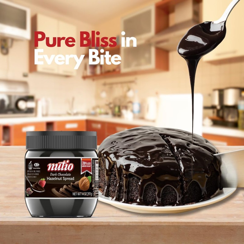 - Cocoa rich recipe for chocolate lovers: Indulge in the rich and velvety Nutio Dark Chocolate Hazelnut Spread, a treat designed for chocolate lovers. This cocoa-rich spread expertly blends dark chocolate with roasted hazelnuts, creating a harmonious fusion of flavors. What makes it special is its reduced sugar content, offering a delicious indulgence with 26% less sugar than traditional alternatives.