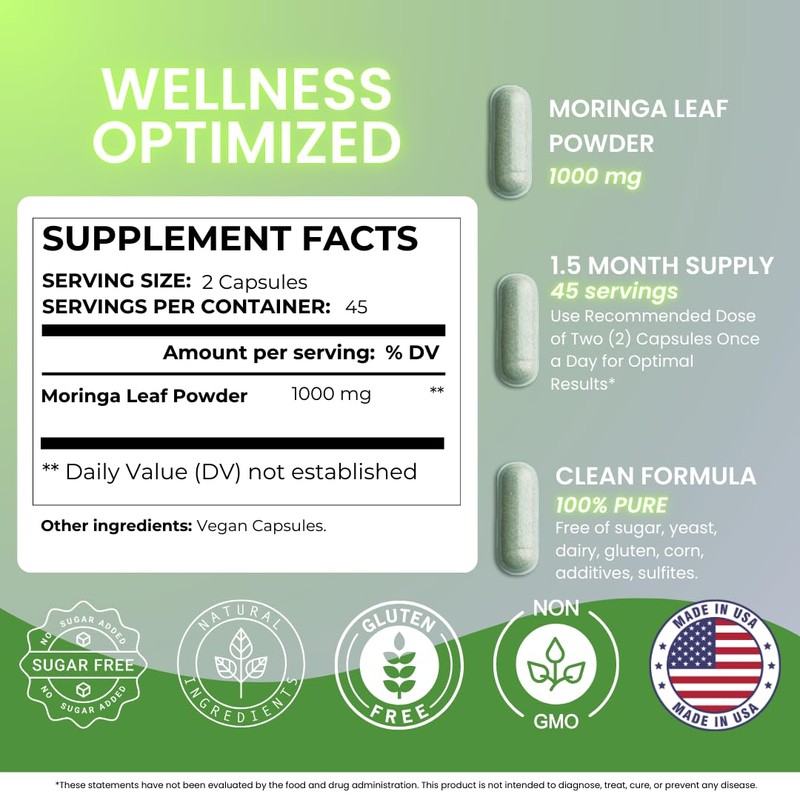 - Packed with Essential Nutrients: Nutra Guru's Moringa Leaf supplement contains a blend of vitamins, minerals, and antioxidants that help nourish your body and support overall health
