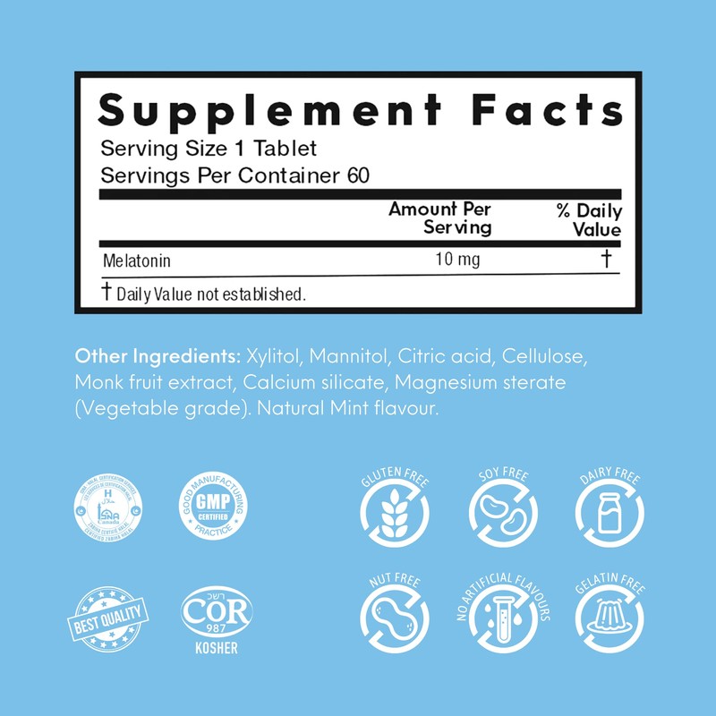 Nutra meltz Melatonin 10 mg Tablets – Natural Sleep Aid Melatonin Supplement for Jet Lag, Helps with Sleep Cycle, Quick Dissolving Tablets for Restful Sleep – Mint Flavor 60 Tablets