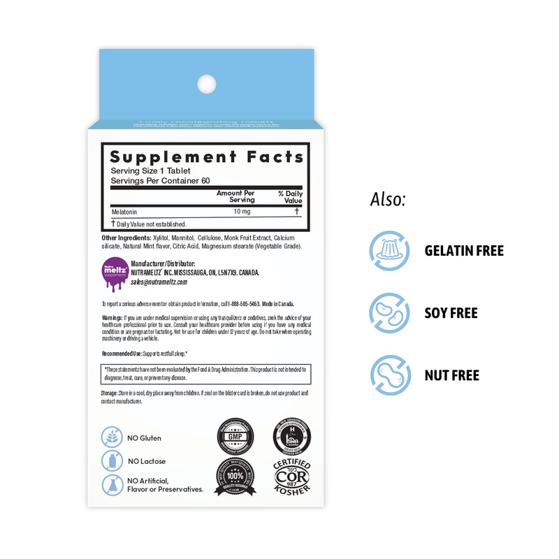 - NO SWALLOWING – Nutrameltz FDT melatonin 10 mg tablets require no water intake as they are designed to melt in your mouth by simply placing it on the tongue. Perfect pills 10mg melatonin for adults & kids who hate swallowing