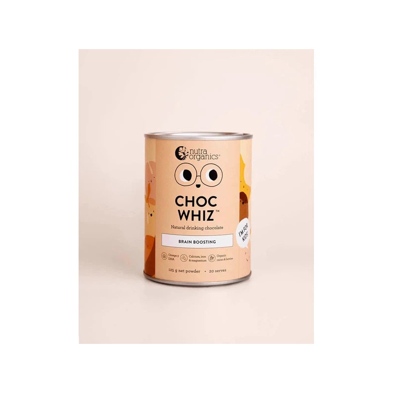 A delicious, brain-boosting and gut-friendly chocolate drink made with organic cacao, super berries, and real choc chunks—perfect for smarty-pants school fuel and sweet tooth satisfaction. Choc Whiz may be modest, but it’s the top of the class when it comes to delicious drinking chocolates for clever kids, made only from the purest, tastiest wholefoods.