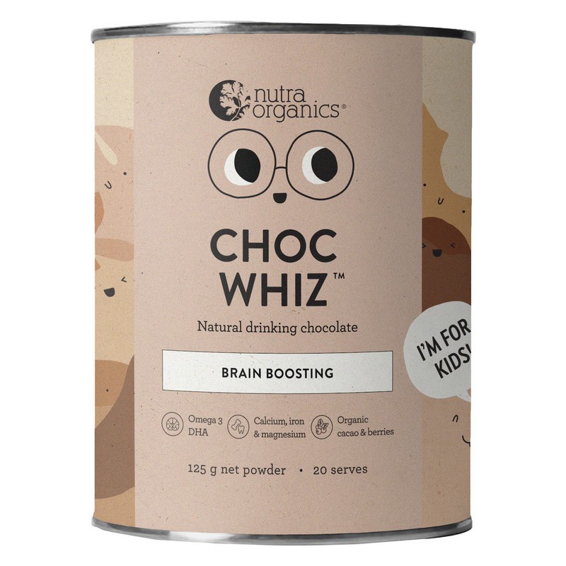 A yummy brain-boosting, gut-loving chocolate drink with organic cacao, super berries and choc chunks for smarty pants school fuel and sweet tooth satisfaction. Although he doesn’t like to brag, Choc Whiz is the dux of delicious drinking chocolates for clever kids, containing only the purest, tastiest wholefoods.