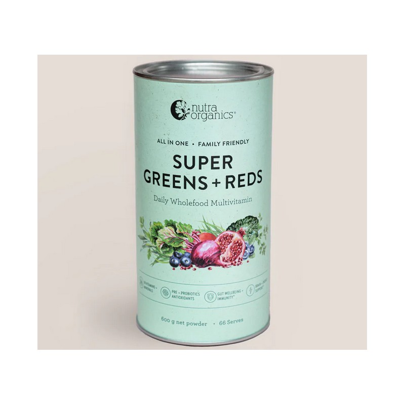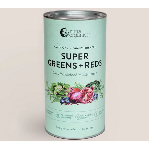 Plus, with a synbiotic blend containing prebiotics and probiotics to support digestive health^, plant protein and a restorative & cleansing herbal blend, Super Greens + Reds is the most comprehensive, potent & bioavailable multivitamin formula using only natural wholefood sources.