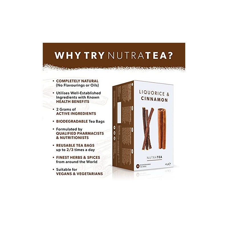 Nutra Tea - Liquorice & Cinnamon Tea | Licorice Tea | Cinnamon Tea - 40 Tea Bags - Herbal Tea - (2 Pack)