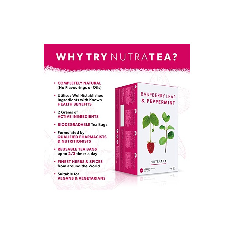 Nutra Tea - Raspberry Leaf & Peppermint Tea - Raspberry Leaf Tea For Pregnancy & Expectant Mothers - 20 Tea Bags - Herbal Tea - (1 Pack)