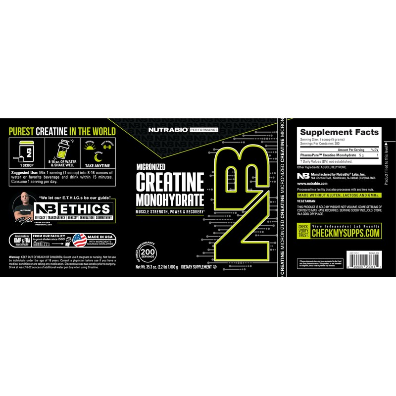 - Promotes Muscle Growth: Creatine is known to support muscle growth, making it an essential supplement for men looking to build lean muscle mass. NutraBio's creatine is certified OU kosher and halal, non-GMO, gluten free, and suitable for vegetarians.